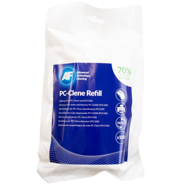 Ekologické náhradní pouzdro na 100 PC čisticích ubrousků napuštěných antistatickým roztokem bez alkoholu. Pomozte zachránit planetu snížením používání plastů. Plastové obaly používané v náhradních sáčcích AF jsou vyrobeny z plastu HDPE2 a lze je recyklovat až 10krát.