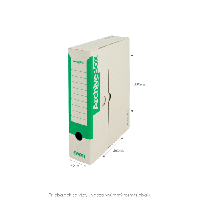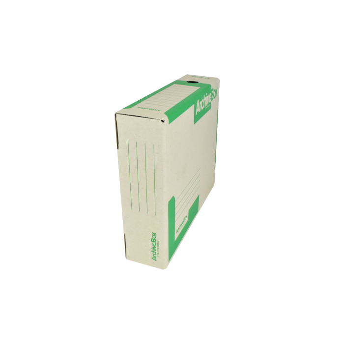 Systém archívnych boxov a škatúľ z vlnitej lepenky. Dodávané v rozloženom stave. Farba prírodná hnedá. Archívny box z hladkej ručnej lepenky, 1 000 g/ m². Konštrukčné riešenie boxu umožňuje rýchly prístup k vloženým dokumentom. Rozmery