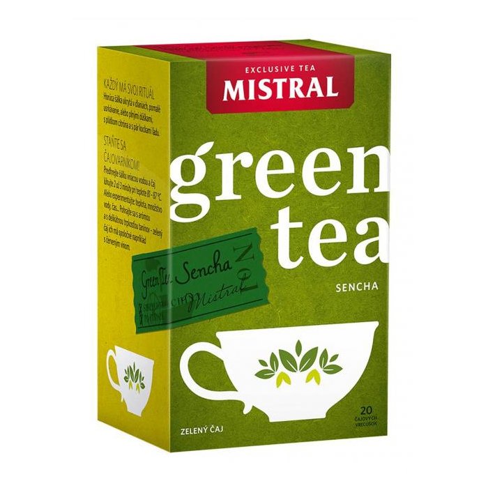 Mistral - Zelený čaj Sencha, porciovaný v nálevových vreckách.