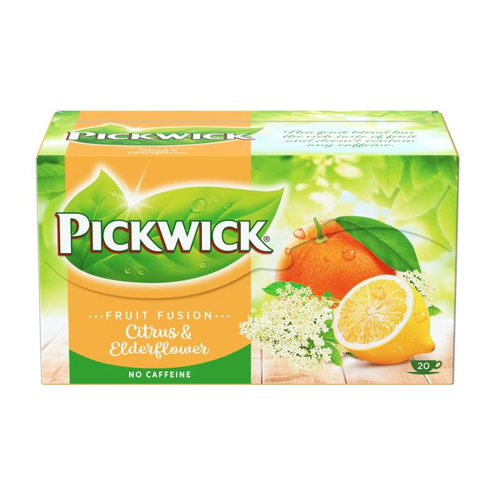 CITRUS S BAZOVÝM KVETOM Pickwick Fruit Fusion, vychutnajte si pomarančovo-citrónovú chuť so sladkým dotykom bazového kvetu. Balenie obsahuje 20 vrecúšok čaju. Hmotnosť 40 g.