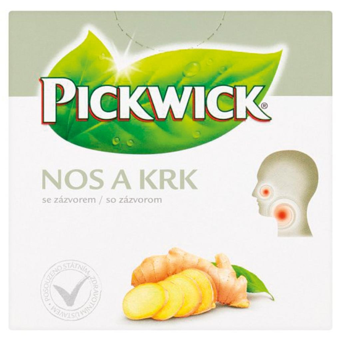 Funkčný čaj Pickwick Nos a krk je vhodný v období častého chladenia. Zázvor prispieva k zdravému imunitnému systému a spoločne s fenyklom pomáha správnej funkcii systému dýchania. Tymián prispieva k prirodzenej obranyschopnosti organizmu a taktiež dýcha napomáha správnej činnosti systému. Balenie obsahuje 10 sáčkov čaju.