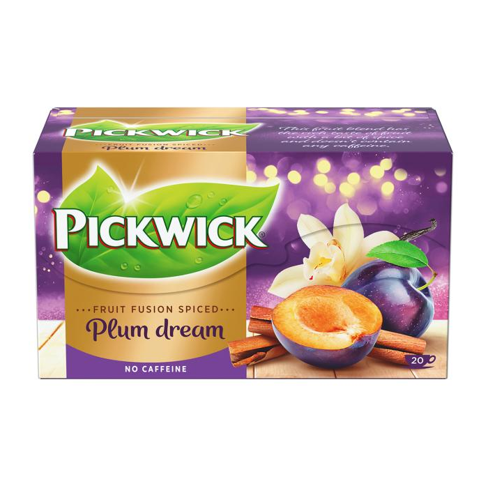 Ovocný čaj Pickwick Fruit Fusion SLIVKA S VANILKOU A ŠKORICOU. Jemná vôňa slivky v kombinácii s vanilkou a škoricou Vám zaručene navodí ten najpríjemnejší pocit. Ovocný čaj aromatizovaný, porciovaný. Hmotnosť 40 g.