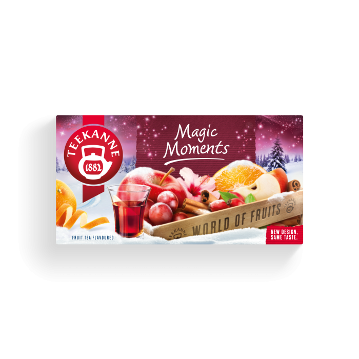 Vychutnajte si unikátnu chuť TEEKANNE World of Fruits "Magic Moments" - špičkovej čajovej zmesi zrelého ovocia s chuťou pomarančov a rumovo-hroznovej arómy. Budete očarený výnimočnou chuťou kúzelného zloženia.