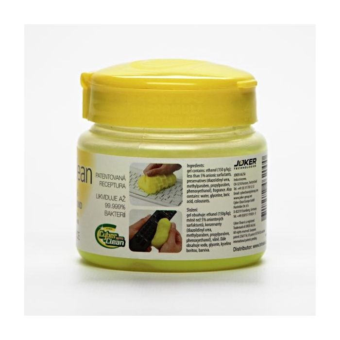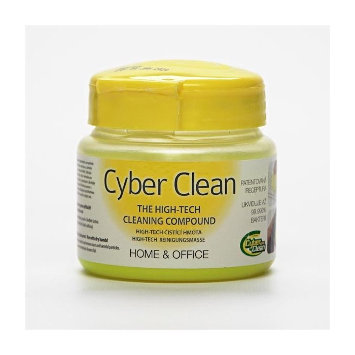 Cyber Clean je ozajstná revolúcia v starostlivosti o vašu techniku. Cyber Clean posúvá hranice fyziky. Tam, kam sa bežne dostupné čistiace prostriedky nedostanú, tam hravo prenikne Cyber Clean. Kombinácia elastickej hmoty a patentovaná receptúra absorbuje z povrchov a štrbín špinu, prach a hubí baktérie. Má dezinfekčný účinok.