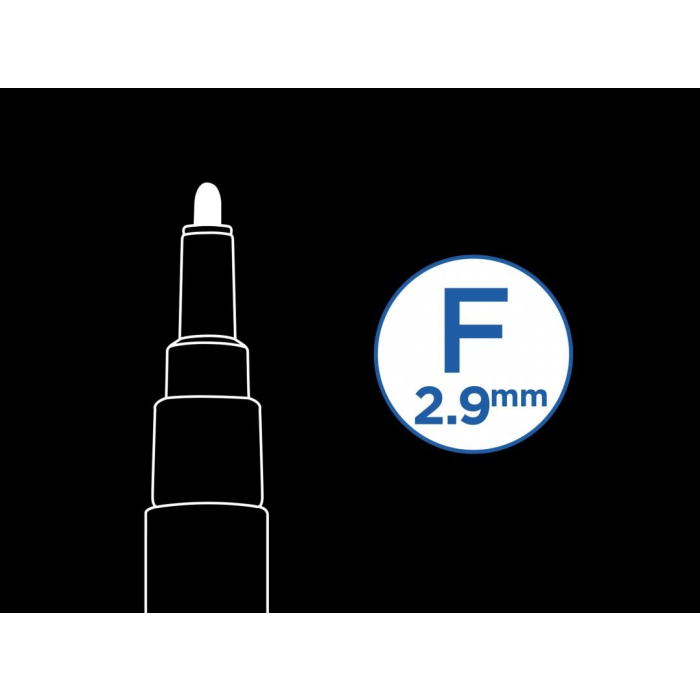 AKO ZAČAŤ? Pred použitím pretrepte asi 20krát. Pozor, aby viečko bolo uzavreté. 3-4krát stlačte hrot opretý o kúsok papiera, kým sa nenasiakne atramentom.