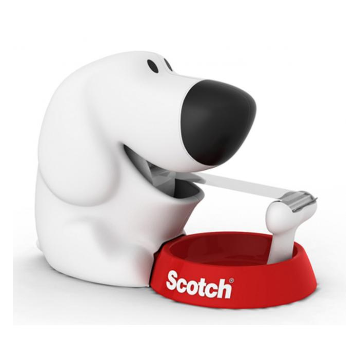 Veselý dispenzor na lepiacu pásku v tvare psa. s ktorým si rozveselíte svoj pracovný stôl. Majte svoju obľúbenú pásku značky Scotch® na dosah ruky. Súčasťou balenia je jedna neviditeľná páska v rozmere 19 mm x 8,89 m.