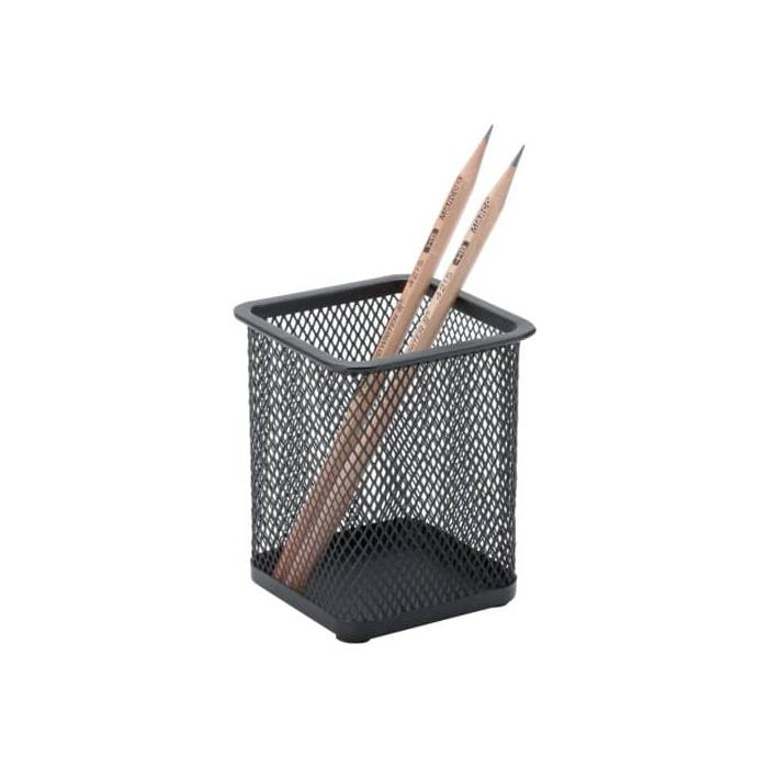 Drôtený štvorcový stojan na perá vyrobený z kovovej sieťoviny potiahnutej lakom. Rozmery: 80x80x100mm. Farba čierna.