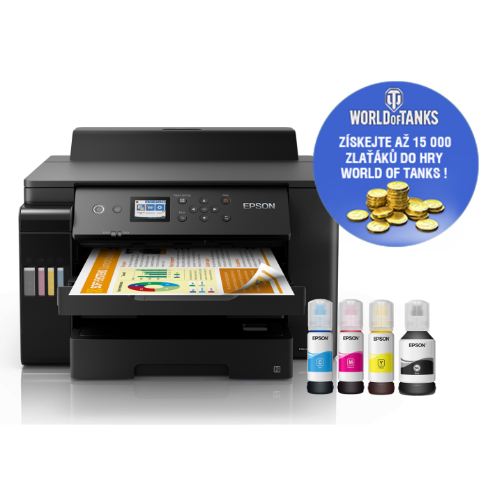 Tisk do formátu A3+ s touto rychlou a funkcemi bohatě vybavenou tiskárnou EcoTank pro firmy. Nabízí nízké náklady na stránku s minimální nutností vašich zásahů, takže vám šetří čas i peníze. Tato tiskárna EcoTank s množstvím funkcí je určena uživatelům v menších kancelářích a firmách, usnadňuje tiskové úlohy do formátu A3+ a nabízí nízké náklady na stránku. Tiskové úlohy do formátu A3+ lze zvládnout rychle díky vysokým rychlostem tisku, dvěma předním zásobníkům na 250 listů A3 a zadnímu podavači o kapacitě 50 listů A3. Díky funkcím mobilního tisku, Ethernet připojení a dotykovému LCD displeji s úhlopříčkou 6,1 cm můžete tisknout tak, jak právě potřebujete. * Tisková hlava PrecisionCore™ * Home Office, Pracovní skupina * LCD displej: Typ: Barevně, Úhlopříčka: 6,1 cm Formát tiskárny: A3+ Rozlišení[DPI]: 4.800 x 1.200 dpi Rychlost tisku ISO/IEC 24734: 25 Str./min Černobíle, 25 Str./min Colour Rychlost tisku: 32 Str./min Černobíle (obyčejný papír), 32 Str./min Colour (obyčejný papír) Rychlost oboustranného tisku ISO/IEC 24734: 21 A4 str./min. Černobíle, 21 A4 str./min. Colour Tisk první strany [sec.]: Černobíle 5,5 s, Colour 5,5 s Oboustranný tisk: Ano (A4/A3, obyčejný papír) Zpracování médií: Automatický oboustranný tisk (A4/A3, obyčejný papír), Tisk bez okrajů Kapacita zásobníku [str.]: Kapacita výstupního zásobníku: 125 Listů Kapacita zásobníku papíru: 550 Listů Standardní Rozhraní: USB, Ethernet, Wi-Fi, Wi-Fi Direct Skener: ne Fax: ne Spotřeba [W]: 0,8 W (úsporný režim), 27 W (tisk), 7,1 W Připraveno, 0,2 W (vypnutí), TEC 0,14 kWh/week Rozměry: 515 x 500 x 300 mm (šířka x hloubka x výška) Hmotnost [kg]: 17 kg Podporované operační systémy: Mac OS X 10.6.8 or later, Windows 10 (32/64 bit), Windows 7 (32/64 bit), Windows 8 (32/64bitová verze), Windows 8.1 (32/64 bit), Windows Server 2008 R2, Windows Server 2012 R2, Windows Server 2016, Windows Vista (32/64bitová verze), Windows XP Professional x64 Edition SP2 or later, Windows XP SP3 or later (32-bit), Windows Server 2003 R2, spectextoptionoperatingsystemswin2003ii2 Obsah balení: 1 sada inkoustu (1 × 127 ml BK, 3 × 70 ml CMY), Hlavní zařízení, napájecí kabel, Úvodní příručka Záruka: 12 + 24 měsíců Odkaz na prodloužení záruky: https://www.epson.cz/promotions/extended-warranty