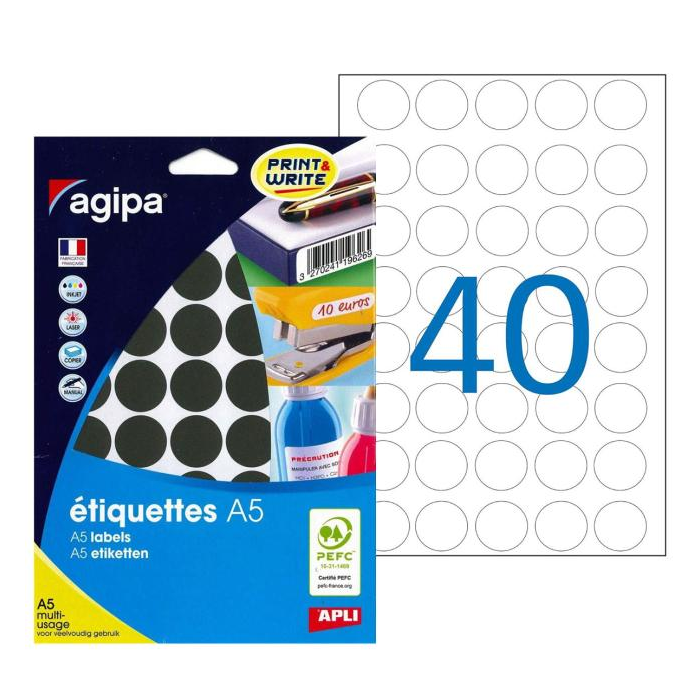 Etikety kruhové 24mm Agipa A5 čierne