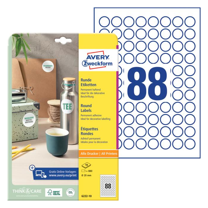| Rozmery etikiet | d 20 mm |