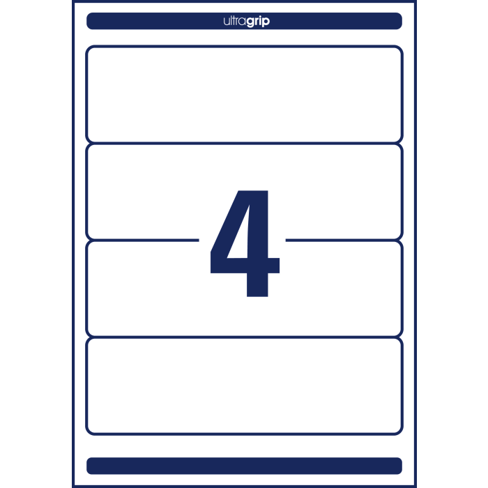 100% krycie papierové etikety na prelepenie neaktuálnych štítkov na chrbtoch zakladačov. Sú vhodné pre tlač vo všetkých druhov tlačiarní a kopíriek. Vďaka inovatívnej technológie ultragrip sa môžete spoľahnúť na bezchybné natiahnutie archu a tlač bez zasekávania. Rozmery v mm : 61 × 192. Farba biela. Etikety na hárku 4 kusy. Balenie 25 + 5 hárkov.