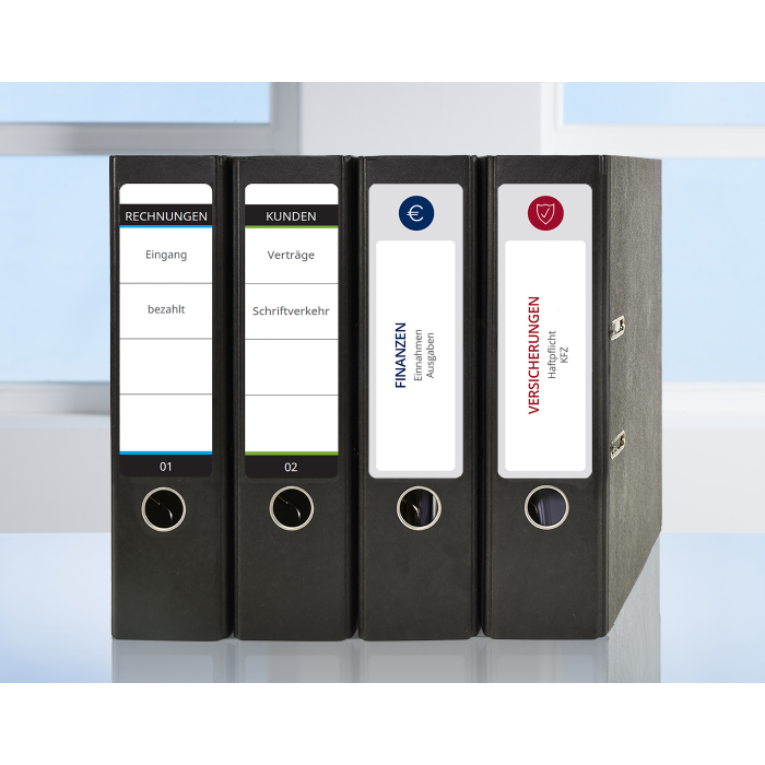 Dodajte Vaším šanónom jednotný vzhľad, štruktúru a poriadok. Potlačené chrbáty šanónov nielen, že vyzerajú profesionálne, ale predovšetkým Vám zjednoduchší prácu a ušetrí čas pri hľadaní dokumentov. V široké ponuke etikiet na zakladače od Avery Zweckform nájdete etikety v rôznych formátoch, farbách a prevedení. Tento krátky formát etikiet sa skvelo hodí na úzke zakladače všetkých zavedených výrobcov. Certifikacia FSC a bielenie bez použitia chlóru - naše etikety na poradače Vás presvedčí nielen tým, že sú vyrobené spôsobom šetrným k životnému prostrediu ale tiež prvotriednou kvalitou tlače - tlač sa nerozmazáva, kontúry sú ostré, farby žiariace. Naviac sú naše etikety na poradače 100% krycí a skvelo prekryjú staré nápisy a etikety na chrbáte šanónu. Môžete tak opakovane používať staré šanóny a znova im dodať profesionálny vzhľad.