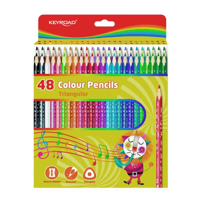 Trojuholníkové ceruzkové pastelky, ideálne na omaľovánky, mäkký grafit, ľahko sa ostria. V sade 48 farieb. Balenie: v krabici. Farba: mix farieb.