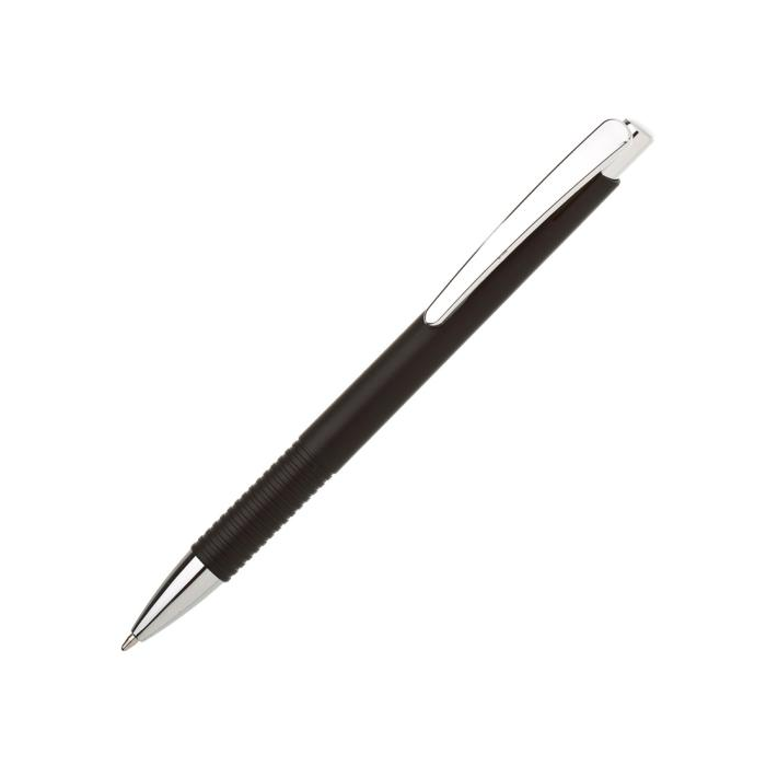 Guľôčkové pero plastové LASTI s vrúbkovaným úchopom a doplnkami v striebornej farbe. Modrá náplň X-20. Farba čierna.