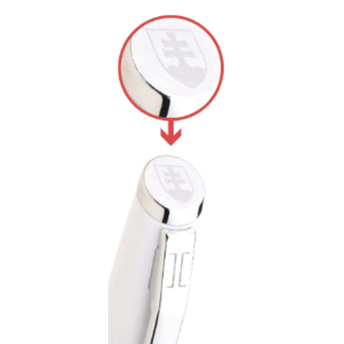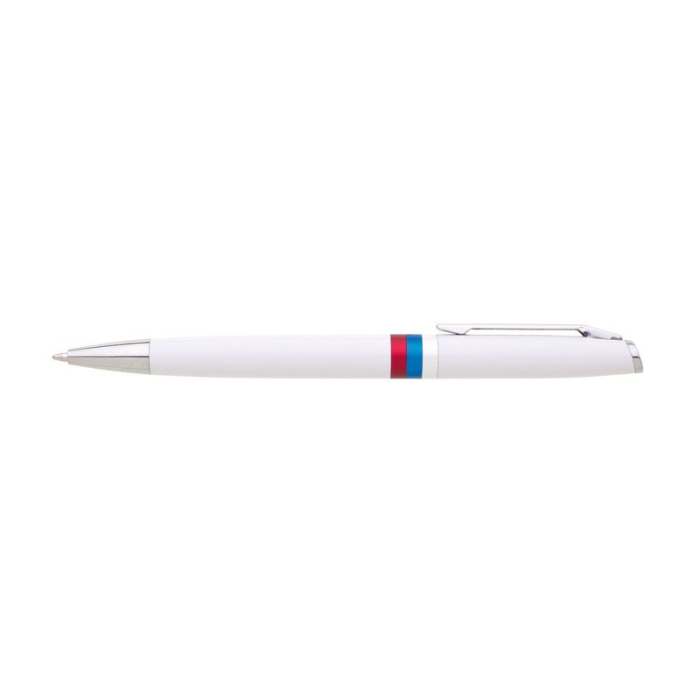 Biele guľôčkové pero REPUBLICA SK s otočným mechanizmom. Na tele je znak SR a trikolóra. Modrá náplň X-20.Vhodné pre mestá, obce, štátne organizácie, firmy - slovenské športové kluby a podobné