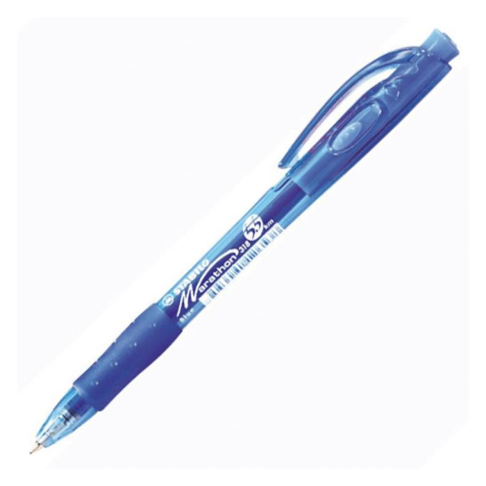 Máte radi prepisovačky? A páčia sa vám farebné s ergonomickým tvarom, ktoré sa dobre držia v ruke? Tak potom je pre vás tým pravým guľôčkové pero STABILO Marathon so stláčacím mechanizmom. Pogumovaná zóna úchopu je pohodlná a ruku hneď tak pri písaní neunaví. S náplňou napíšete text s dĺžkou až 5500 metrov. Šírka stopy je 0,38 mm. Farba tela guľôčkového pera sa zhoduje s farbou náplne.