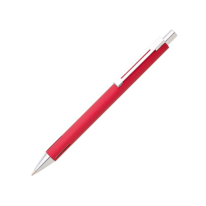 Elegantné guľôčkové pero s jemným ryhovaním. Farebné telo ozvláštnia stieborné doplnky.Modrá náplň veľkoobjemová.