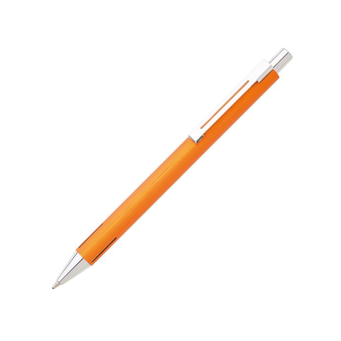Elegantné guľôčkové pero s jemným ryhovaním. Farebné telo ozvláštnia stieborné doplnky. Modrá náplň veľkoobjemová.