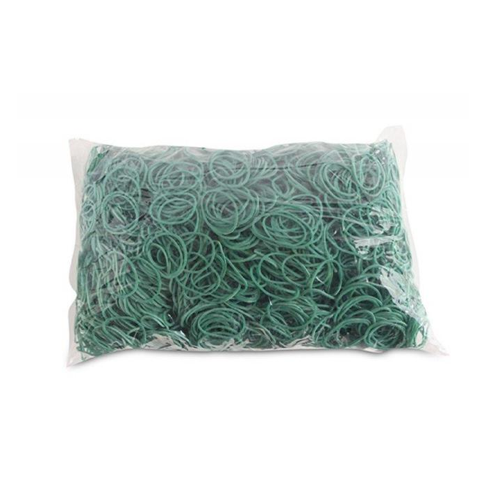 Odolné a pružné gumičky vyrobené z materiálu s prímesou gumy (60 %). Rozmery (hrúbka × šírka) 1,5 × 1,5 mm. Priemer 30 mm. Farba zelená.