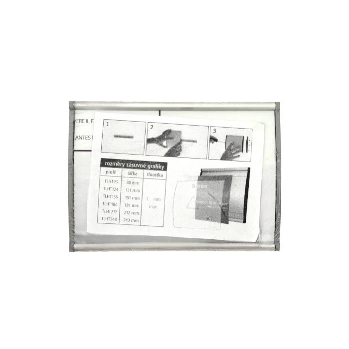 Vypuklé menovky s výškou 93 mm sú dostupné s čiernymi alebo zo šedými bočnicami.. Do zásuvných menoviek je možné vkladať výmennú grafiku (tlačenú na papier, fóliu napr. v laserovej tlačiarni) ktorú prekrýva rozptyľovacia prítlačná fólia. Výmena grafiky pomocou prísavného klobúčika (cupátko), dodáva sa ako príslušenstvo je veľmi jednoduchá. Je možné vkladať aj gravírované doskové materiály do max. hrúbky 1,6mm. Nástenné menovky Hi-tech je možné montovať ako na šírku (vodorovne) tak aj na výšku ( kolmo ). Kotviaci materiál je súčasťou balenia.