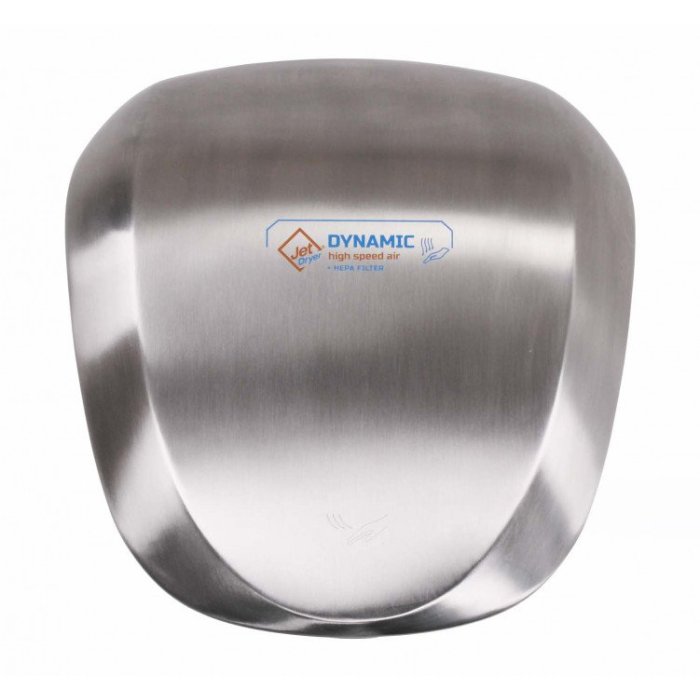 Jet Dryer DYNAMIC je jediný sušič rúk z teplovzdušných modelov rady Jet Dryer vybavený HEPA filtrom. Vďaka tomu je vzduch vyfukovaný na ruky vždy maximálne hygienický a nezávadný. HEPA filter zachytí až 99,97 % baktérií, vírusov a ďalších drobných častíc. Sušič je úplne bezkontaktný, aktivuje sa automaticky po vložení rúk pod prístroj. Zaobalený dizajn krytu umožňuje ľahké čistenie.