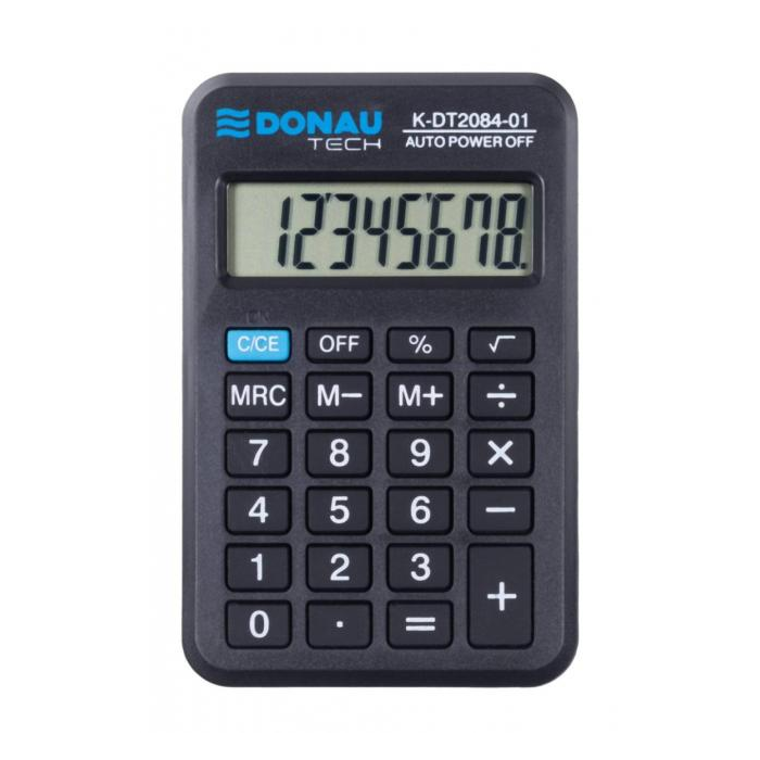 Kalkulačka s 8-miestnym displejom a gumenými tlačidlami. Farba čierna. Záruka 5 rokov. Technická špecifikácia: • výpočet % a odmocniny • automatické vypnutie • napájanie batériou • rozmery 60 x 97 x 11 mm.