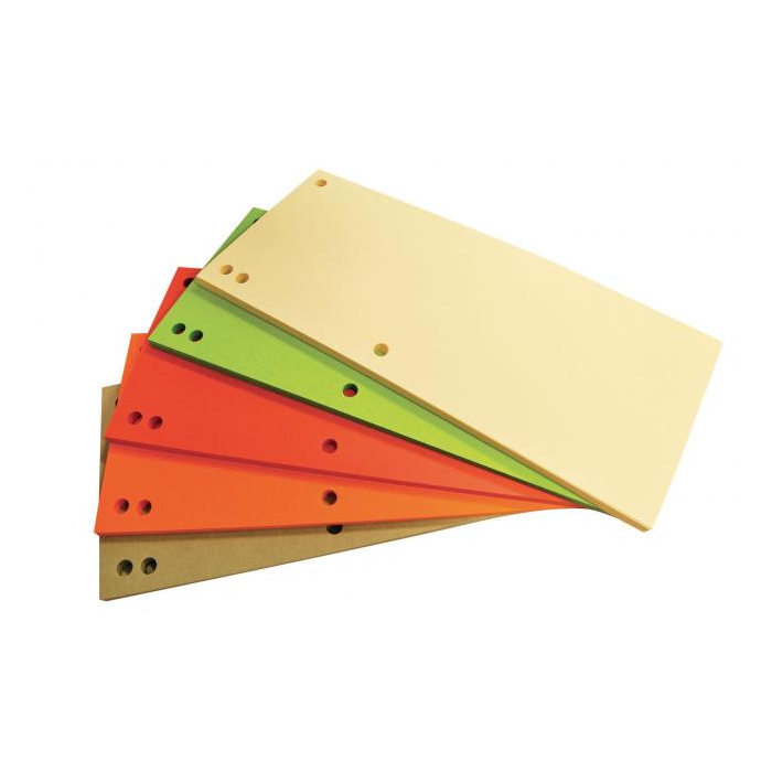 Úzke rozraďovače rozmerov 105 × 235 mm. Materiál kartón. Dodávané v mixe farieb - 20 ks od farby, 5 farieb.