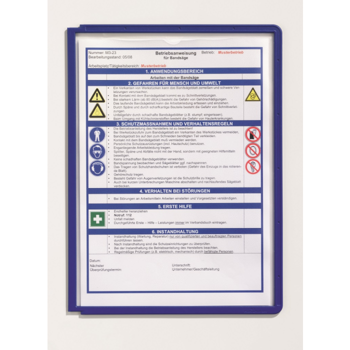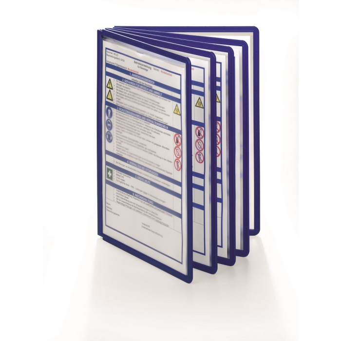 Displejový panel vyrobený z matného antireflexného polypropylénu pre systém Sherpa, kovové držiaky a rotačný stojan. Vložený materiál je kopírovateľný a skenovateľný. Pevný farebný rám s pozíciami pre indexy. Formát A4. Balenie 5 ks. Farba rámu: tmavomodrá Popis: pozície pre indexy