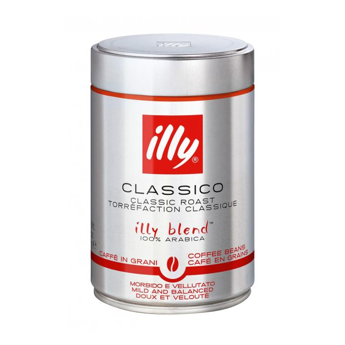 Káva illy Espresso Classico je 100% Arabica so sviežou kvetinovou arómou a strednou cremou. Je veľmi vhodná na prípravu espressa. Vzhľadom na nízky obsah kofeínu je vhodná na celodenné popíjanie. Zrná Arabiky sú pôvodom z Južnej a Strednej Ameriky, Indie a Afriky. Hmotnosť 250 g.
