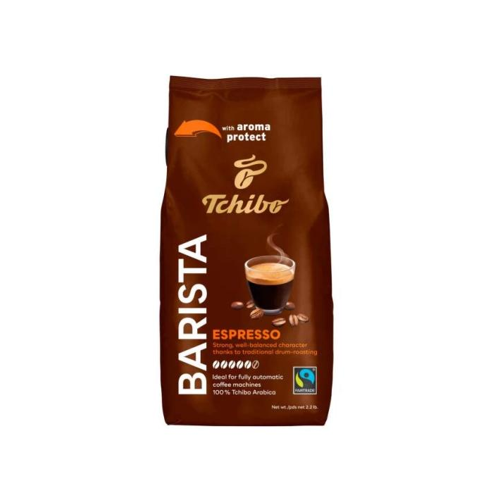 Tchibo Barista espresso sa vyrába z kávových plodov, ktoré pochádzajú zo zodpovednej poľnohospodárskej produkcie a sú zošľachťované pomalým pražením v bubnovej pražičke. Má jemný základ s nežnými tónmi horkej čokolády a orieškovým akcentom. Najnovšie je so špeciálnym uzáverom na zachovanie čerstvej arómy, ideálne dávkovanie a jednoduché opätovné uzavretie obalu.