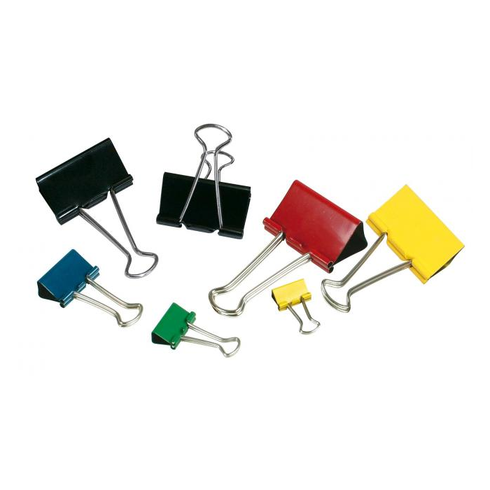 Klipy farebné v šírke 41 mm na zopnutie papierov. V balení 12 ks v mixe farieb (červená, žltá, zelená a modrá).