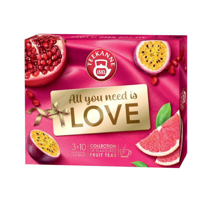 Neodolateľný výber ochutených ovocno-bylinných čajov. Znamenitá Love kolekcia od TEEKANNE - ochutnajte tri výnimočne lahodné ovocné zmesi pre všetky Vaše zmysly. LOVE - s príchuťou granátového jablka, PASSION - s príchuťou maracuje a TEMPTATION - s príchuťou jablka a karamelu.