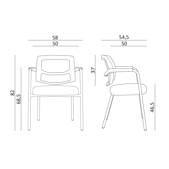 • konferenčná stolička s lyžinovou podnožou a podrúčkami