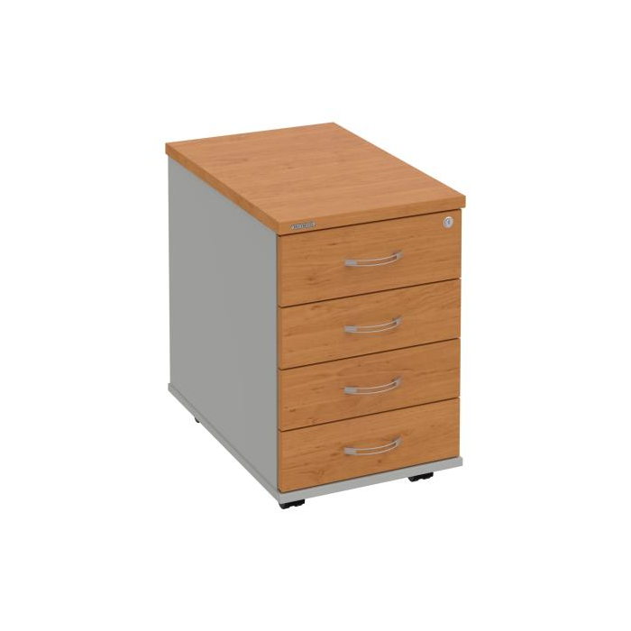 Kontajnery - všetko uložené a vždy poruke. Kontajnery sa väčšinou umiestňujú pod stoly. Mobilné modely sú vybavené kolieskami, je možné ich premiestniť podľa potreby. Základným materiálom korpusov je kvalitná laminovaná drevotriesková doska hrúbky 18 mm. Pre dlhšiu životnosť je na horný diel korpusu použitá doska, ktorej hrúbka je 25 mm. Korpusy a čelá zásuviek sú chránené proti poškodeniu hranou ABS 2 mm. Kontajnery sú vybavené zámkom s centrálnym zamykaním. Vďaka integrovanému systému STOP-CONTROL s centrálnym zámkom u väčšiny kontajnerov sa nemusíte báť prevrhnutiu kontajnera alebo prípadného privretia ruky. Systém zaručí, že pri otvorení jednej zásuvky sa ostatné zásuvky automaticky zablokujú. Zásuvky sú z plastu, ktorý je ľahko umývateľný a vhodný pre jednoduchú údržbu. Praktickou súčasťou vrchnej zásuvky je prehľadný organizér a priestorové deliace priečky. Vaše ceruzky, sponky a ďalšie kancelárske potreby budú vždy na poriadku. Organizér a deliace priečky sú súčasťou každého kontajnera. Na kontajnery Hobis sa vzťahuje päťročná záruka.