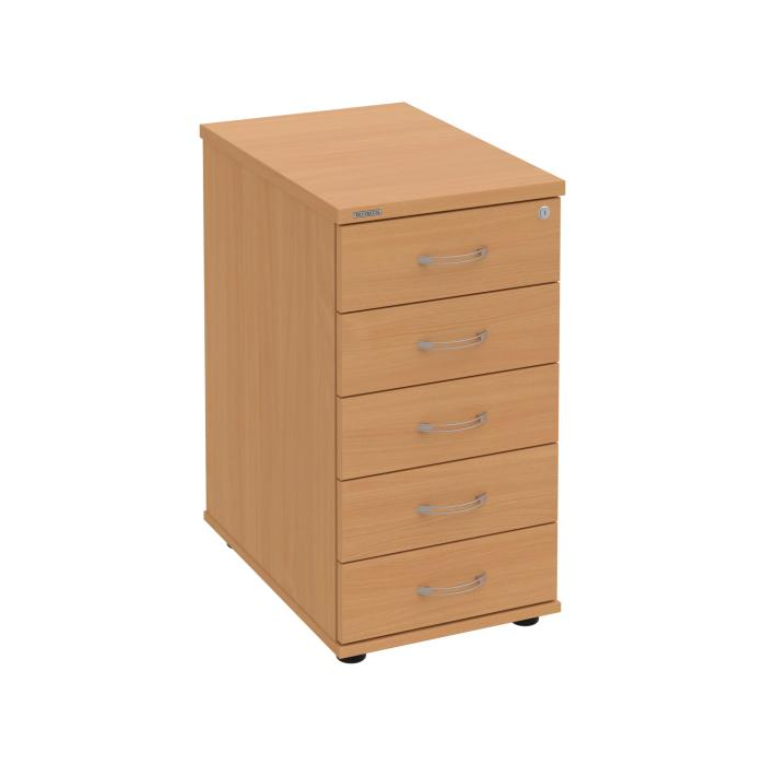 Kontajnery - všetko uložené a vždy poruke. Kontajnery sa väčšinou umiestňujú pod stoly. Mobilné modely sú vybavené kolieskami, je možné ich premiestniť podľa potreby. Základným materiálom korpusov je kvalitná laminovaná drevotriesková doska hrúbky 18 mm. Pre dlhšiu životnosť je na horný diel korpusu použitá doska, ktorej hrúbka je 25 mm. Korpusy a čelá zásuviek sú chránené proti poškodeniu hranou ABS 2 mm. Kontajnery sú vybavené zámkom s centrálnym zamykaním. Vďaka integrovanému systému STOP-CONTROL s centrálnym zámkom u väčšiny kontajnerov sa nemusíte báť prevrhnutiu kontajnera alebo prípadného privretia ruky. Systém zaručí, že pri otvorení jednej zásuvky sa ostatné zásuvky automaticky zablokujú. Zásuvky sú z plastu, ktorý je ľahko umývateľný a vhodný pre jednoduchú údržbu. Praktickou súčasťou vrchnej zásuvky je prehľadný organizér a priestorové deliace priečky. Vaše ceruzky, sponky a ďalšie kancelárske potreby budú vždy na poriadku. Organizér a deliace priečky sú súčasťou každého kontajnera. Na kontajnery Hobis sa vzťahuje päťročná záruka.