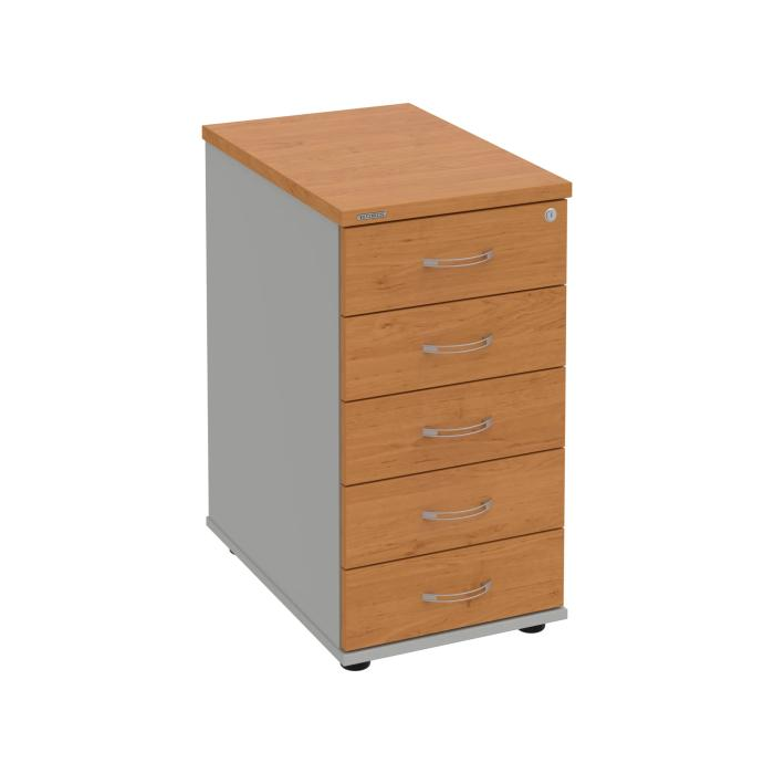 Kontajnery - všetko uložené a vždy poruke. Kontajnery sa väčšinou umiestňujú pod stoly. Mobilné modely sú vybavené kolieskami, je možné ich premiestniť podľa potreby. Základným materiálom korpusov je kvalitná laminovaná drevotriesková doska hrúbky 18 mm. Pre dlhšiu životnosť je na horný diel korpusu použitá doska, ktorej hrúbka je 25 mm. Korpusy a čelá zásuviek sú chránené proti poškodeniu hranou ABS 2 mm. Kontajnery sú vybavené zámkom s centrálnym zamykaním. Vďaka integrovanému systému STOP-CONTROL s centrálnym zámkom u väčšiny kontajnerov sa nemusíte báť prevrhnutiu kontajnera alebo prípadného privretia ruky. Systém zaručí, že pri otvorení jednej zásuvky sa ostatné zásuvky automaticky zablokujú. Zásuvky sú z plastu, ktorý je ľahko umývateľný a vhodný pre jednoduchú údržbu. Praktickou súčasťou vrchnej zásuvky je prehľadný organizér a priestorové deliace priečky. Vaše ceruzky, sponky a ďalšie kancelárske potreby budú vždy na poriadku. Organizér a deliace priečky sú súčasťou každého kontajnera. Na kontajnery Hobis sa vzťahuje päťročná záruka.