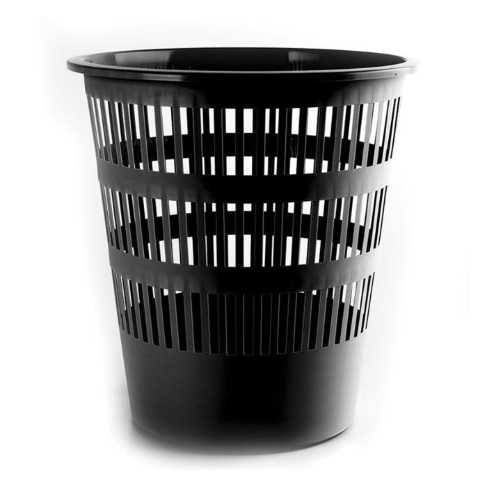 čierny plastový kôš na papier. Výška nádoby 29,5 cm, priemer 27,5 cm. Objem 12 litrov.