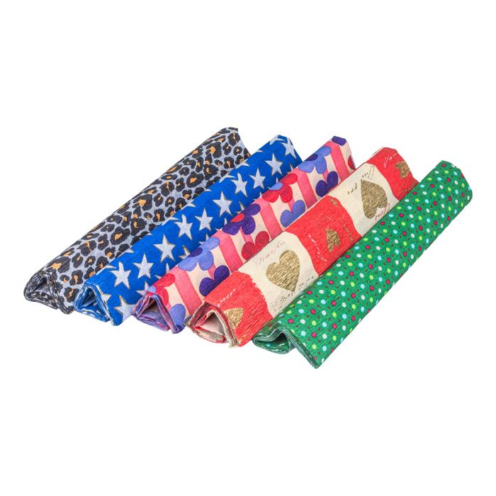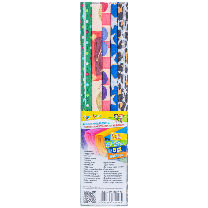 Krepový papier GIMBOO v rolke s potlačou, rozmer 25x200 cm, mix farieb, 5ks