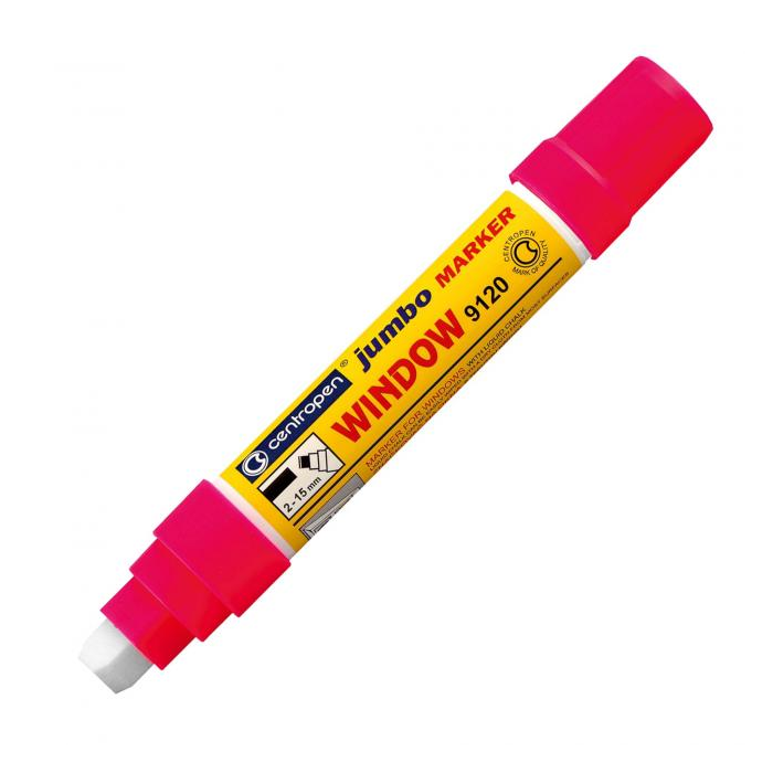 Špeciálny popisovač na okná, zrkadlá, výklady. Tekutá krieda na vodnej báze so silnými krycími schopnosťami, stierateľná. Zrezaný hrot, šírka stopy 2 - 15 mm. Väčšie balenie 5 ks v jednej farbe. Farba ružová.