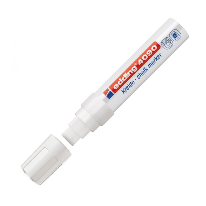 Pokiaľ ide o neprašné kriedové označenia alebo texty, sotva existuje lepšie riešenie ako kriedový popisovač edding 4090. Jeho extra široký hrot v tvare sekáča uvoľňuje vysoko nepriehľadné, tekuté kriedové farby na hladké povrchy, ako sú tabule, zrkadlá a sklo. Tento popisovač od Eddingu je vhodný nielen na kreatívne tvorenie doma, ale je aj obľúbeným nástrojom v podnikoch, ako sú reštaurácie, bary alebo sklársky priemysel.