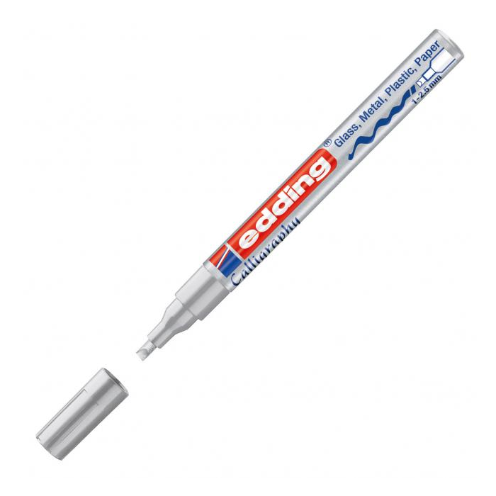 Tento popisovač s charakteristickým dlátovým hrotom umožňuje aj začiatočníkom vytvárať krásne kaligrafické písmo raz-dva. Jednoducho držte ruku v rovnakom uhle počas písania a hrot automaticky zabezpečí krásne písmo. Lesklý kaligrafický popisovač edding 753 funguje dobre nielen na tmavom papieri, ako sú narodeninové blahoželania a baliaci papier, ale možno ho použiť aj na hladkých materiáloch, ako je sklo, kov a plast.
