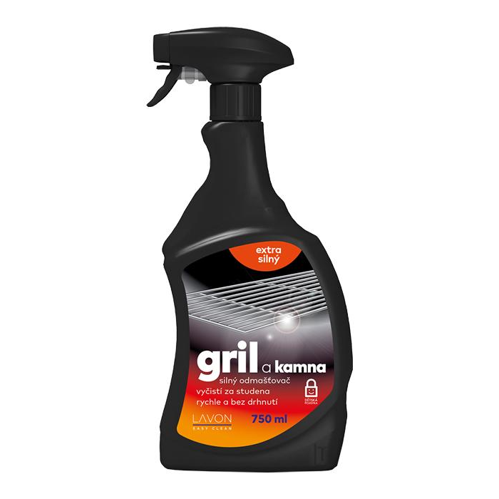 Lavon gril a kachle 750 ml je extra silný odmasťovač pre ľahké odstránenie nečistôt, mastnoty, sadzí a pripálenín. Čistí bez mechanickej námahy. Vhodný na grily, rúry (okrem samočistiacich), krby, kachle, rošty, hrnce, plechy na pečenie, obklady a škáry. Čistí za studena aj za tepla. Používajte ochranné pomôcky podľa informácií na etikete.