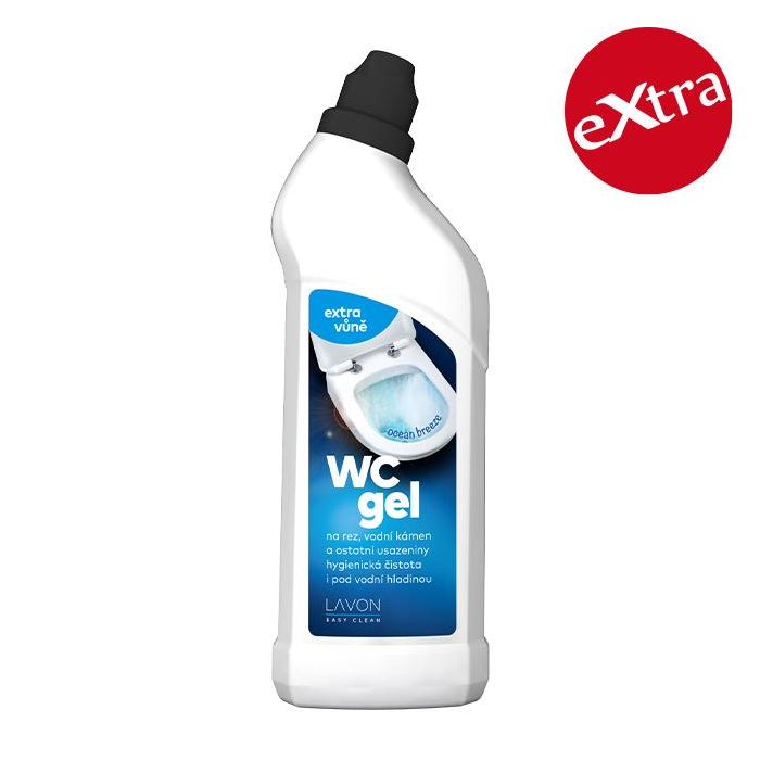 Lavon WC gél s vôňou oceánu 750 ml s obsahom kyseliny a sviežou parfumáciou účinne a ľahko odstráni hrdzu, vodný a močový kameň nielen z toalety, ale aj z ďalších sanitárnych zariadení. Pre maximálnu čistotu aj pod vodnou hladinou.