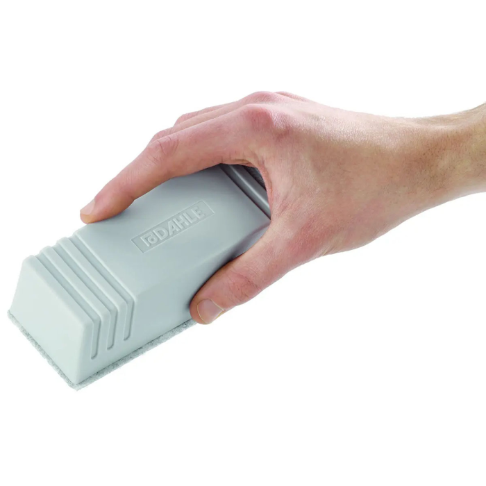 Magnetická stierka s vymieňateľnými filcovými vankúšikmi. Farba sivá.