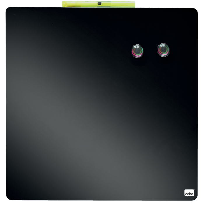 Kompaktné magnetické dielce stierateľné za sucha majú ideálnu veľkosť pre každý pracovný stôl, doma i v kancelárii. Obsahujú dva magnety, biely popisovač s mazacou hubou a montážnu penovú pásku. Farba: čierna. Rozmery 360 × 360 mm.