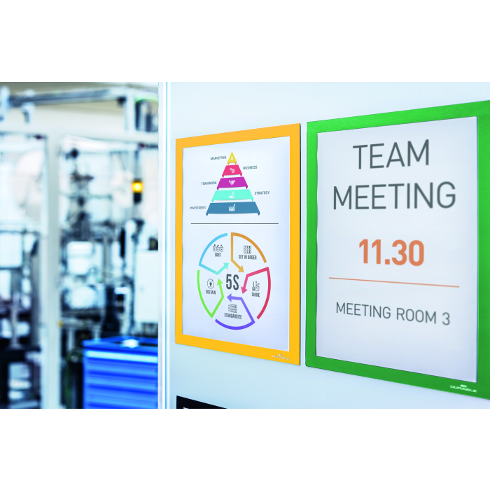 Informačný panel s magnetickou časťou na zadnej strane rámika na jednoduché a rýchle vkladanie informácie formátu A4. Vhodný na hladké magnetické povrchy, napr. magnetickú tabuľu. Farba žltá. V balení 5 ks.