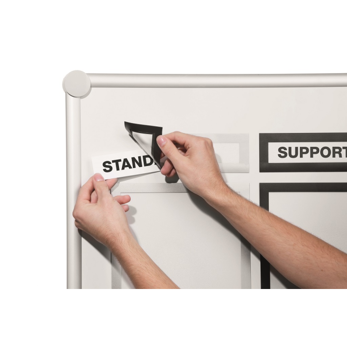Informačný panel na titulky štruktúr informačných materiálov s magnetickou časťou na zadnej strane rámika na jednoduché a rýchle vkladanie informácie. Vonkajšie rozmery 236 × 66 mm, list na potlačenie 210 × 40 mm. Vhodný na hladké magnetické povrchy, napr. magnetickú tabuľu. Farba strieborná. Balenie 5 ks.