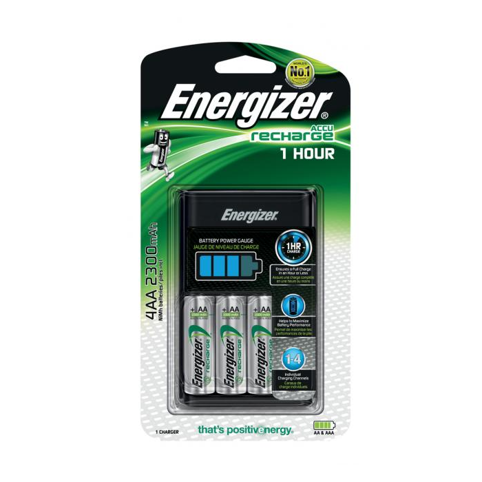 Nabíjačka na  individuálne nabíjanie 1 - 4  NiMH batérií AA alebo AAA v  atraktívnom „high-tech“ dizajne. Dodávaná vrátane 4  ks AA 2 300 mAh batérií.