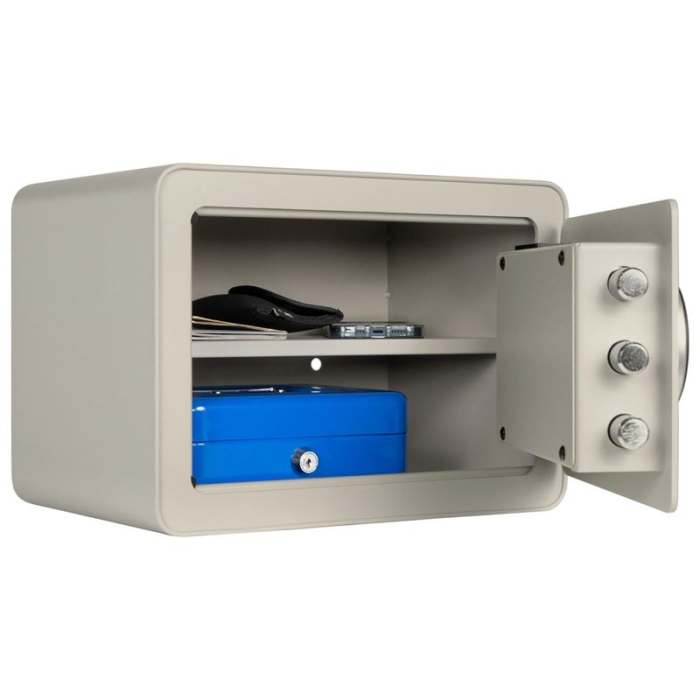 Nábytkový sejf Rottner Vintage je kompaktný, štýlový trezor, ktorý sa hodí do každej domácnosti alebo hotelovej izby. Pri sťahovaní ho možno ľahko vziať so sebou. Tento nábytkový sejf má elektrický zámok s odtlačkom prsta, ktorý sa dá v prípade núdze otvoriť aj mechanicky pomocou kľúča. Otvory vyvŕtané do zadnej steny a podlahy uľahčujú inštaláciu. Séria Vintage je k dispozícii vo viacerých farebných prevedeniach. Kotviaci materiál je súčasťou dodávky.
