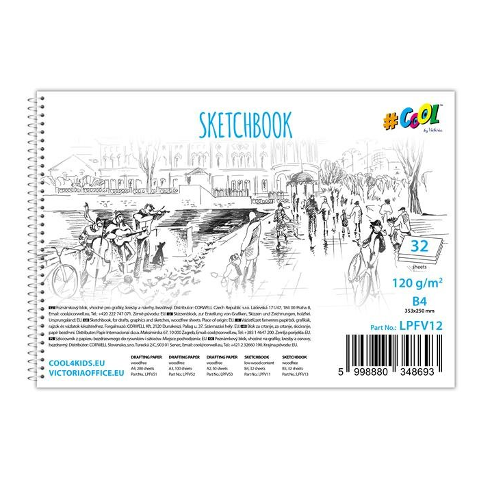 Náčrtník, bezdrevný, 32 listový, B4, špirálový, 120 g, COOL BY VICTORIA, vhodné na grafiky, kresby a osnovy